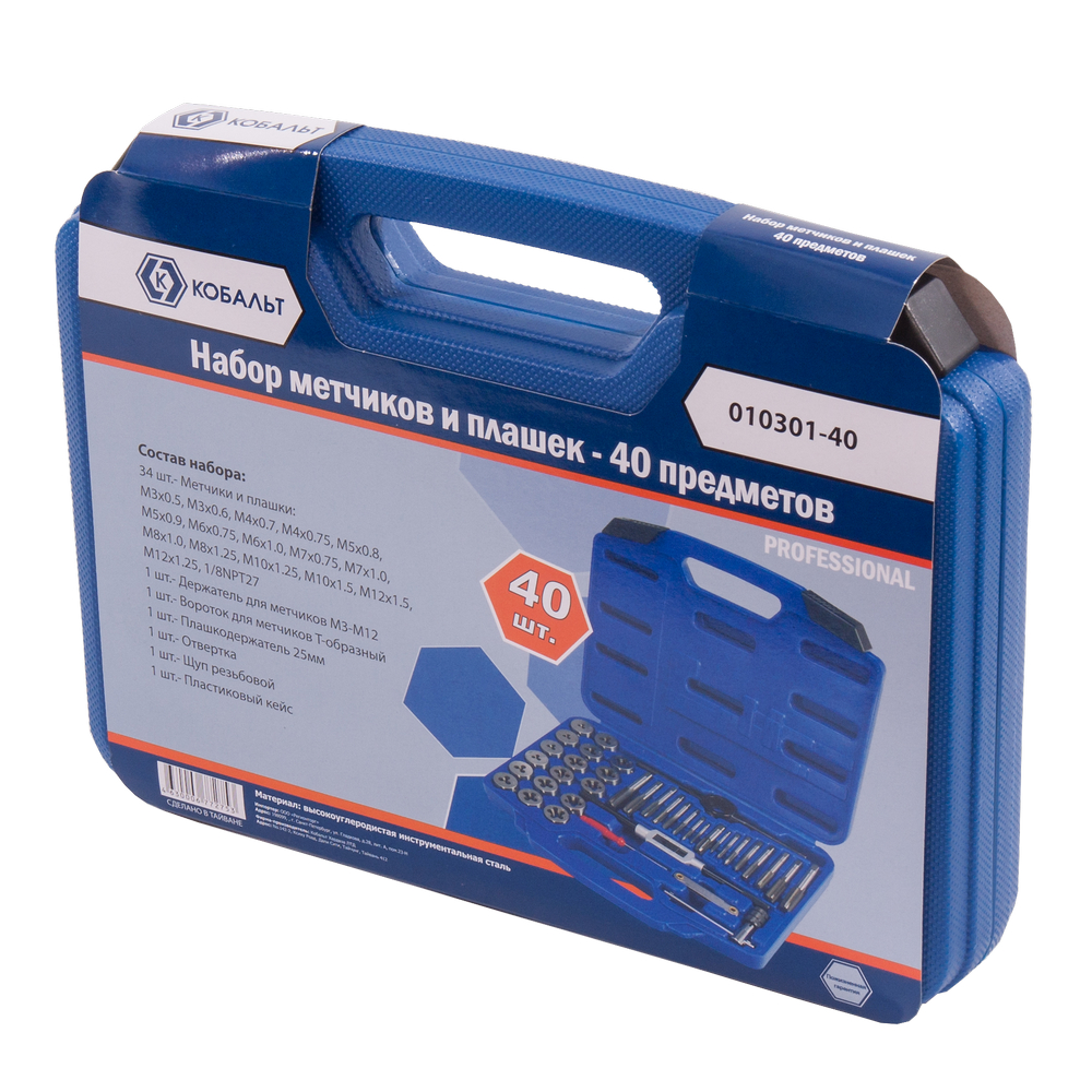 Набор метчиков и плашек КОБАЛЬТ (40 предметов) кейс арт. 010301-40 | код 1726