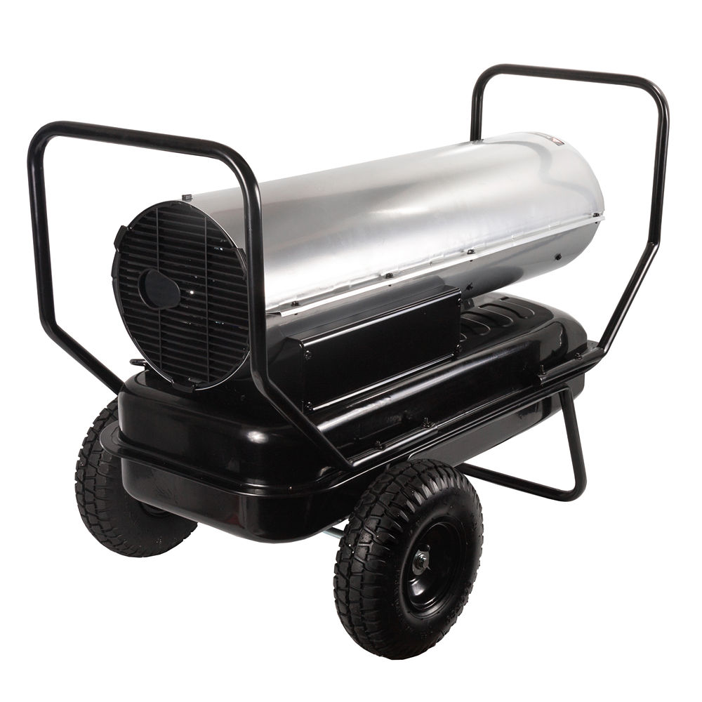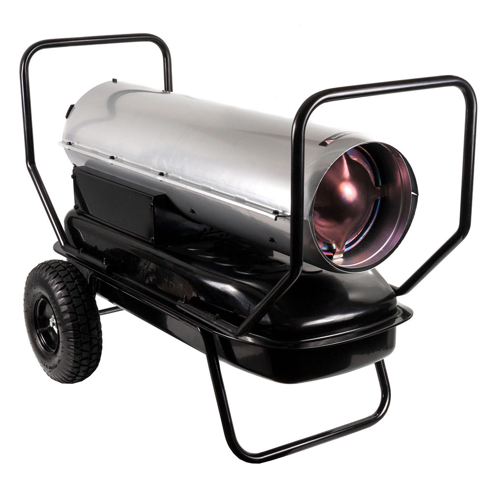 Классическая тепловая пушка прямого нагрева компрессорного типа, работающая на дизельном топливе или керосине.