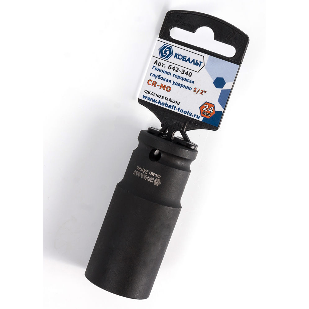 Головка торцевая глубокая ударная КОБАЛЬТ 1/2", 24 мм, Cr-Mo (1 шт.) подвес(1 шт.) подвес (1/2", 24мм, Cr-Mo, подвес) арт. 642-340 | код 29910