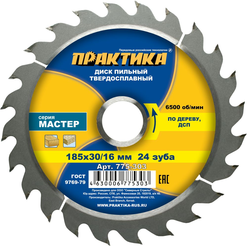 Диск пильный твёрдосплавный по дереву, ДСП ПРАКТИКА 185 х 30\20\16 мм, 24 зубов (дерево/ДСП, 185х30\20\16мм, 24зубов) арт. 775-303 | код 30053