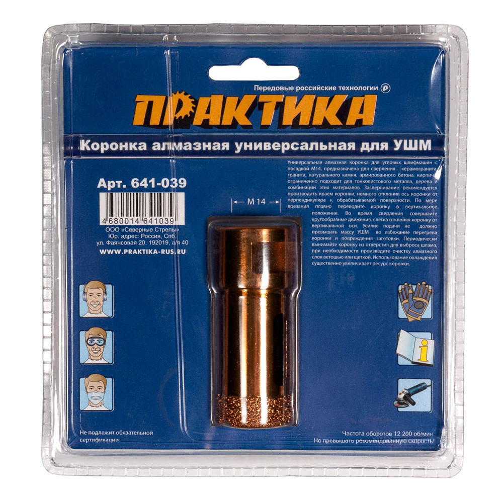 Коронка алм. ПРАКТИКА 641-039 25мм, М14, универсальная, для УШМ.