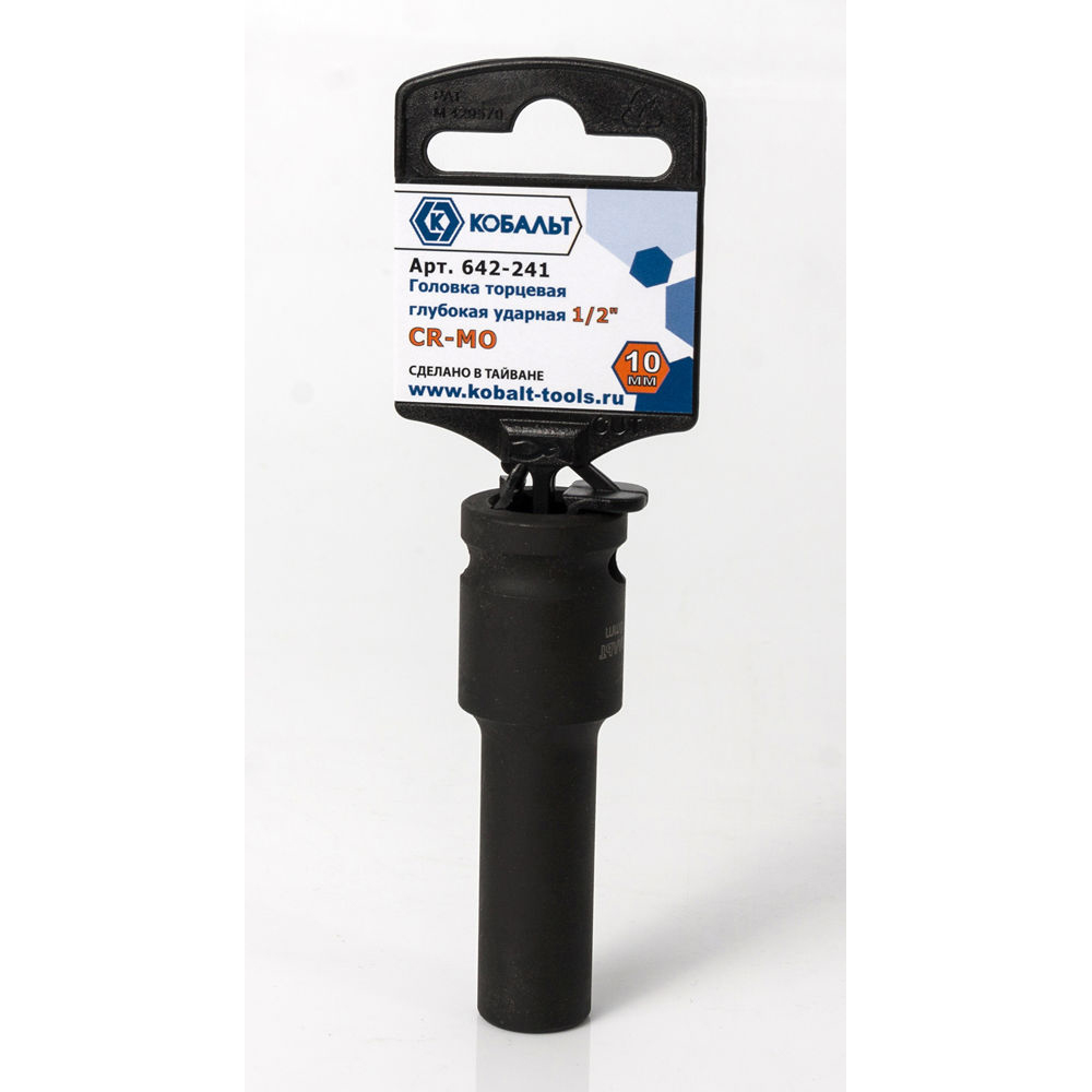 Головка торцевая глубокая ударная КОБАЛЬТ 1/2", 10 мм, Cr-Mo (1 шт.) подвес(1 шт.) подвес арт. 642-241 | код 426784