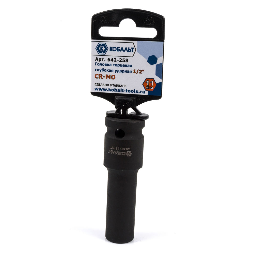Головка торцевая глубокая ударная КОБАЛЬТ 1/2", 11 мм, Cr-Mo(1 шт.) подвес арт. 642-258 | код 426785