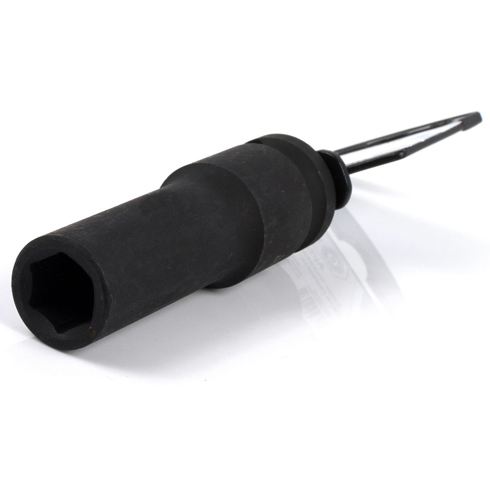 Головка изготовлена из хроммолибденовой стали, которая обеспечивает наивысшую прочность при работе с экстремальным, жестким, крутящим моментом развиваемым ударными гайковертами. Специальная форма профиля головки предохраняет от срыва грани болтов и гаек. Толстая стенка головки предохраняет ее от разрушения при достижении пиковых нагрузок. Головка имеет отверстие для жесткой фиксации на шпинделе гайковерта. Длина головки 78мм - идеально для работы с гайками на длинных шпильках.