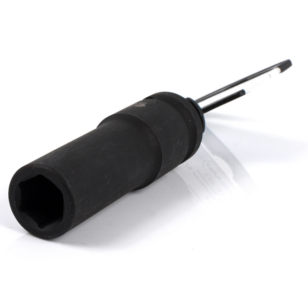 Головка изготовлена из хроммолибденовой стали, которая обеспечивает наивысшую прочность при работе с экстремальным, жестким, крутящим моментом развиваемым ударными гайковертами. Специальная форма профиля головки предохраняет от срыва грани болтов и гаек. Толстая стенка головки предохраняет ее от разрушения при достижении пиковых нагрузок. Головка имеет отверстие для жесткой фиксации на шпинделе гайковерта. Длина головки 78мм - идеально для работы с гайками на длинных шпильках.