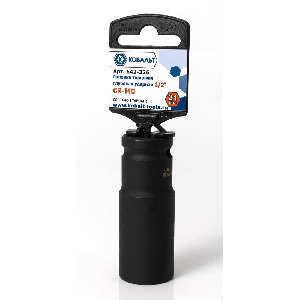 Головка торцевая глубокая ударная КОБАЛЬТ 1/2", 21 мм, Cr-Mo (1 шт.) подвес(1 шт.) подвес арт. 642-326 | код 426792