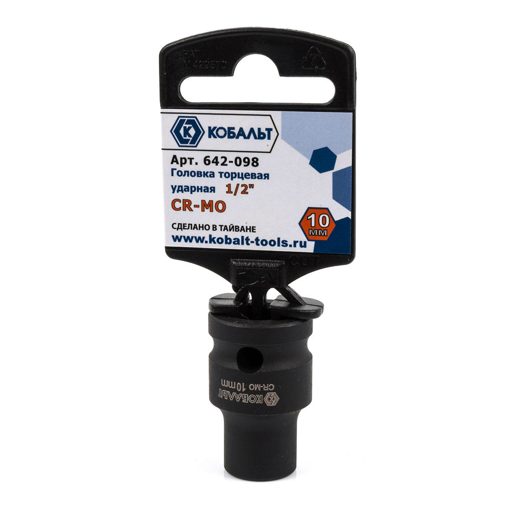 Головка торцевая ударная КОБАЛЬТ 1/2", 10 мм, Cr-Mo(1 шт.) подвес арт. 642-098 | код 426859