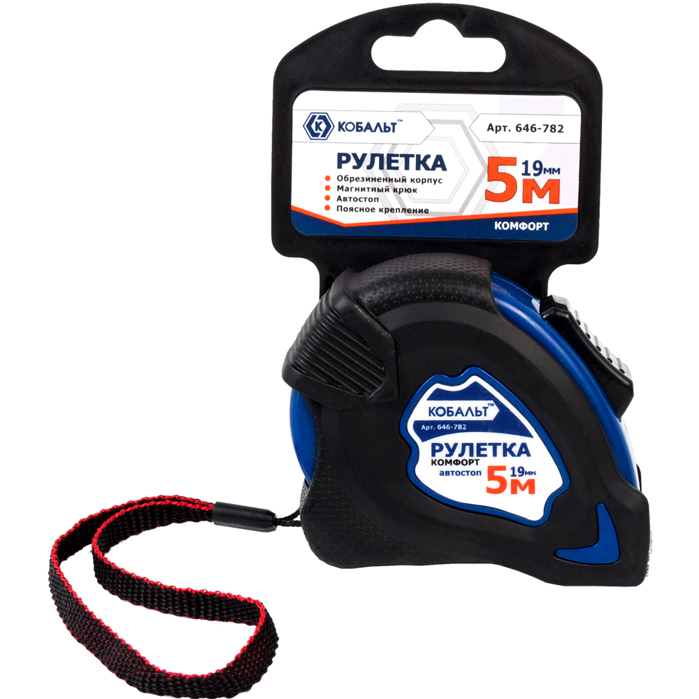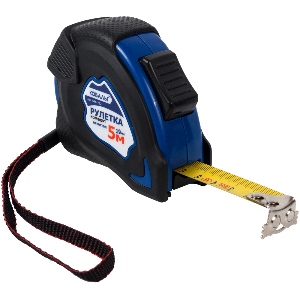 Рулетка КОБАЛЬТ Комфорт 5м x 19мм обрезиненный корпус(автостоп, магн. крючок, матов. покрытие, толщ. 0,13 мм) арт. 646-782 | код 426896