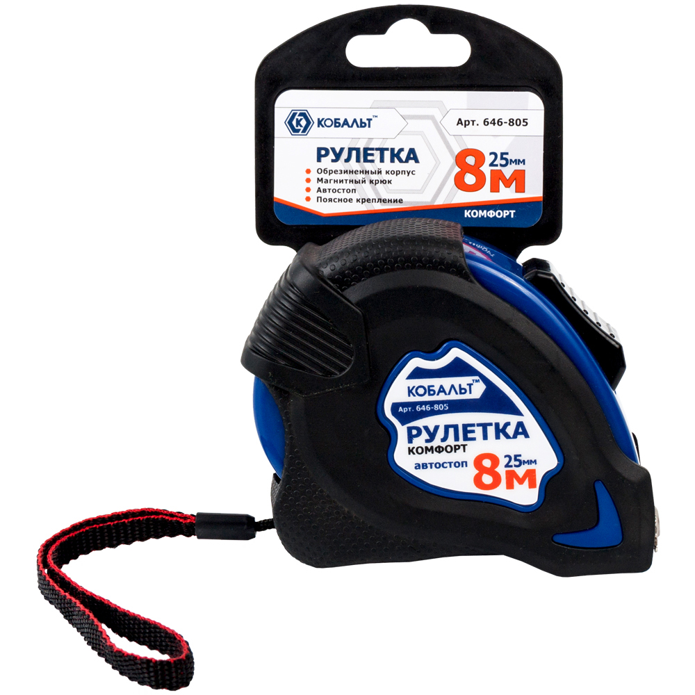 Рулетка Комфорт (8м x 25мм) обрезиненный корпус КОБАЛЬТ 646-805 арт. 646-805 | код 426898