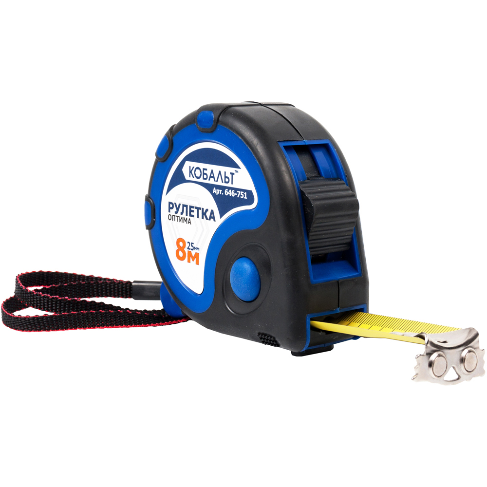 Рулетка КОБАЛЬТ Оптима 8м x 25мм двухкомпонентный корпус(тройной стопор, магн. крючок, матов. покрытие, толщ. 0,11 мм) (тройной стопор, магн. крючок, матов. покрытие, толщ. 0,11 мм) арт. 646-751 | код 426902