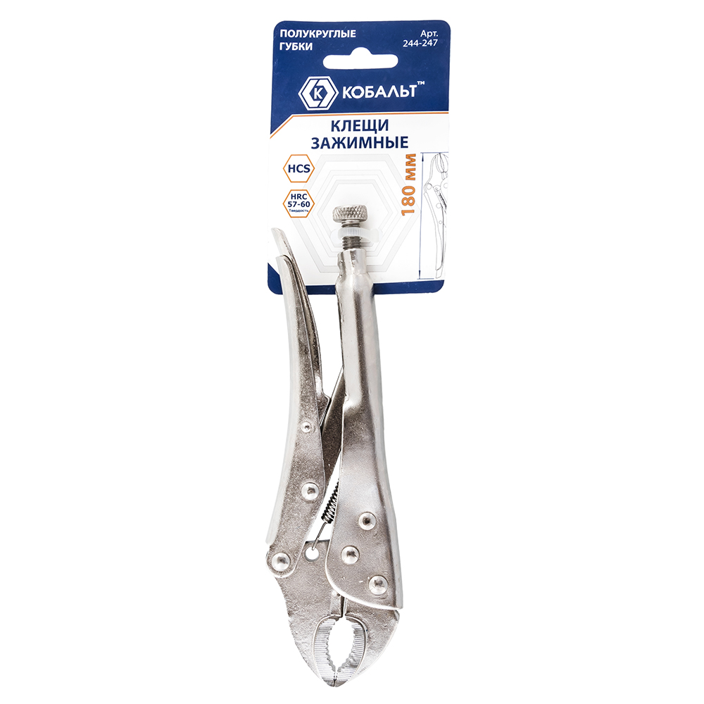 Клещи зажимные КОБАЛЬТ полукруглые губки, 180 мм (1 шт., подвес) арт. 244-247 | код 427007