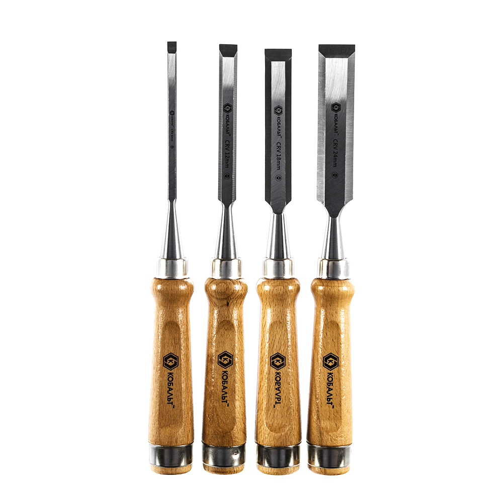 Набор стамесок КОБАЛЬТ плоских: 6, 12, 18, 24 х 140 мм,CR-V, деревянная рукоятка (4 шт.) блистер (4 шт., блистер)