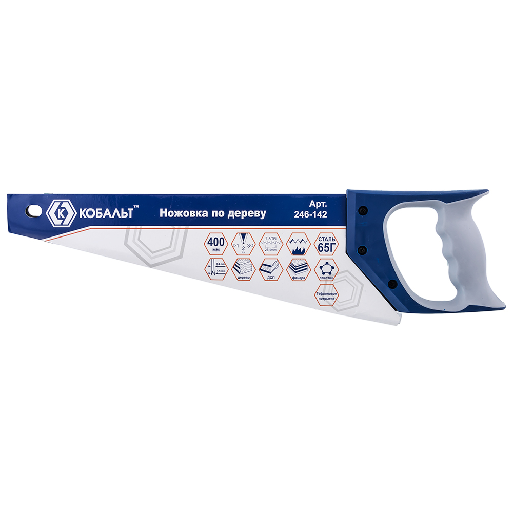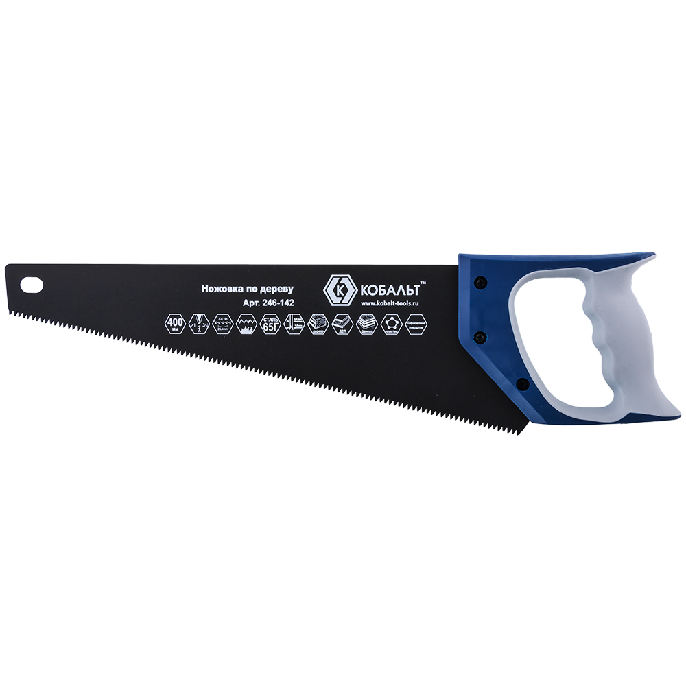 Ножовка по дереву КОБАЛЬТ 400 мм, шаг 3,5 мм/ 7 TPI, тефлоновое покрытиезакаленный зуб, 3D-заточка, двухкомпонентная рукоятка, чистый рез арт. 246-142 | код 427124
