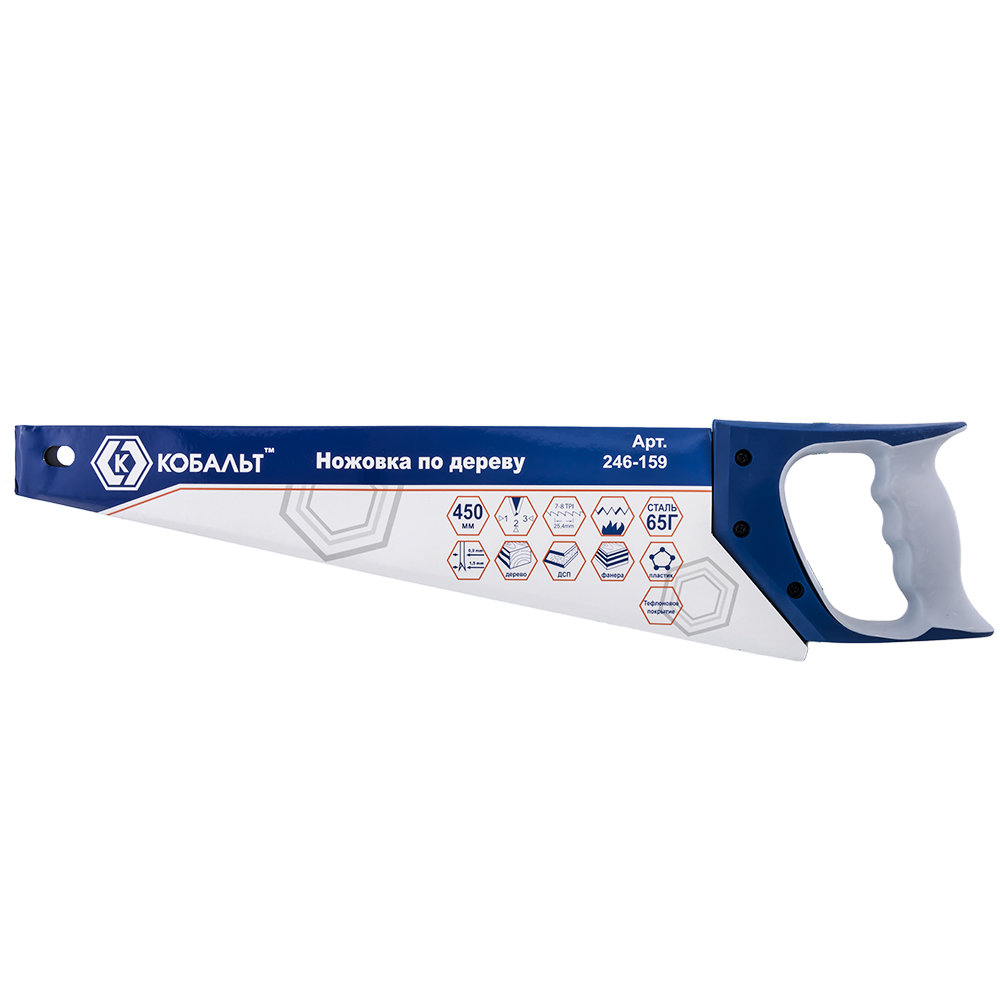 Ножовка по дереву КОБАЛЬТ 450 мм, шаг 3,5 мм/ 7 TPI, тефлоновое покрытиезакаленный зуб, 3D-заточка, двухкомпонентная рукоятка, чистый рез арт. 246-159 | код 427126