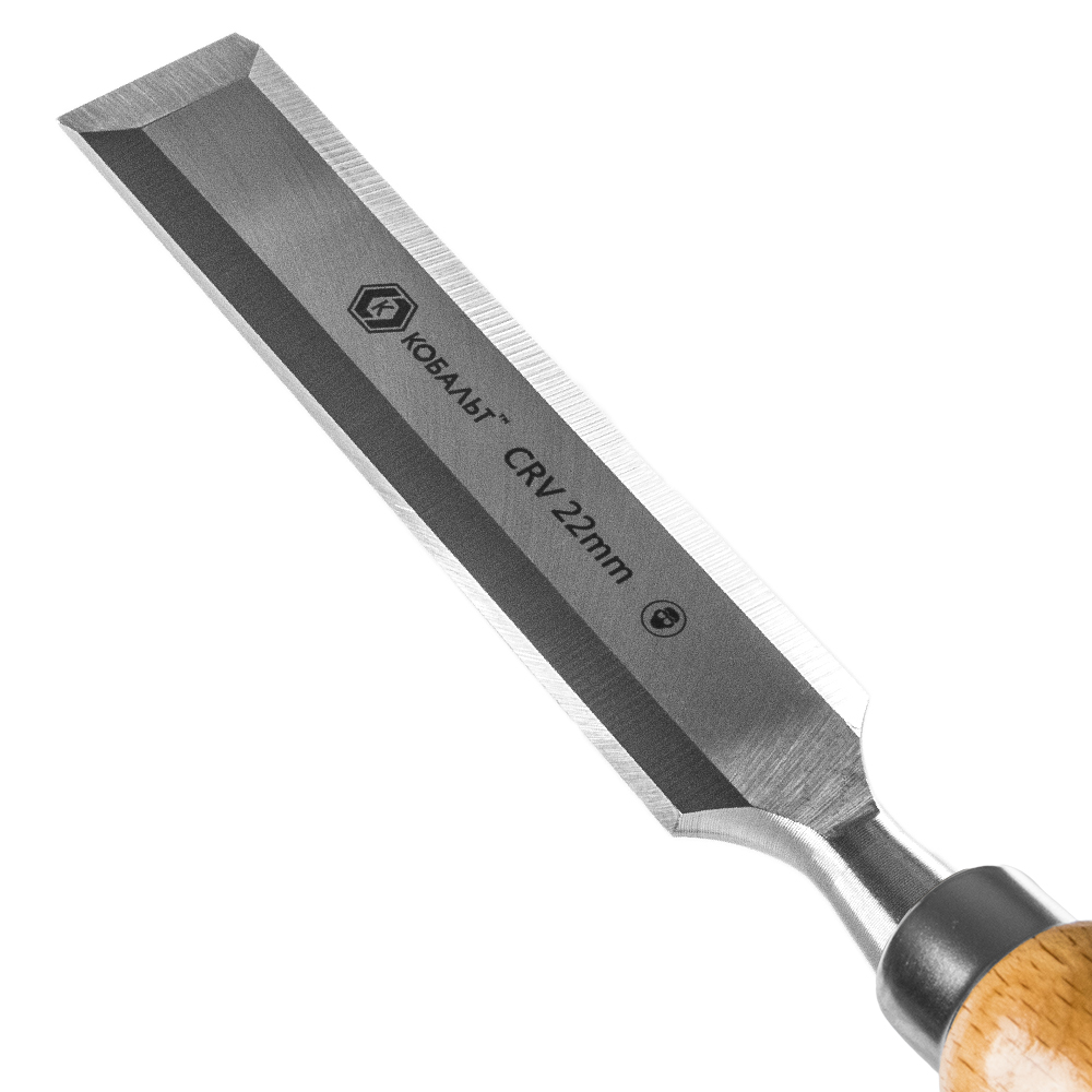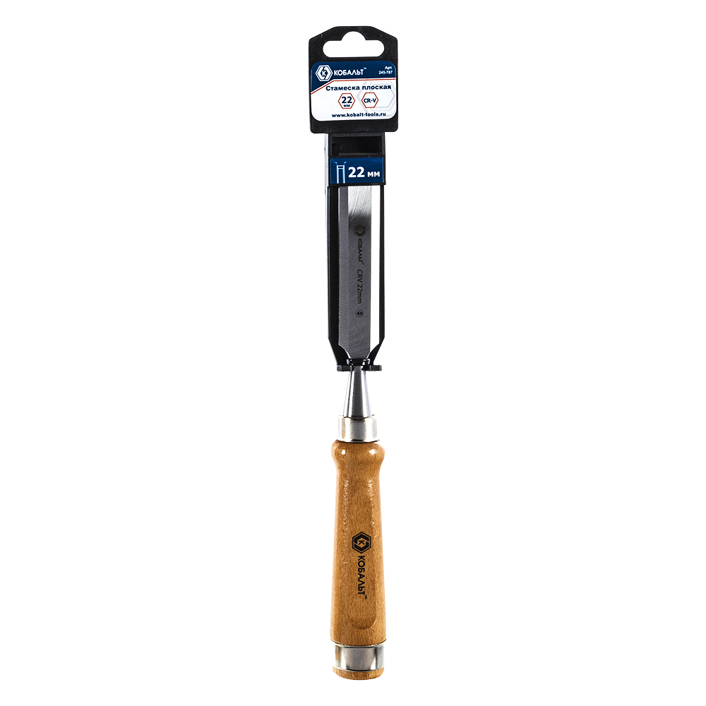 Стамеска плоская КОБАЛЬТ 22 х 140 мм, CR-V, деревянная рукоятка (1 шт.) подвес (1 шт., подвес)