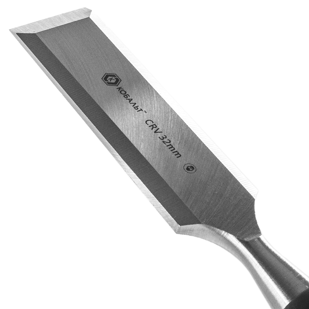 Стамеска плоская КОБАЛЬТ 32 х 140 мм, CR-V, двухкомпонентная рукоятка (1 шт.) блистер (1 шт., блистер)