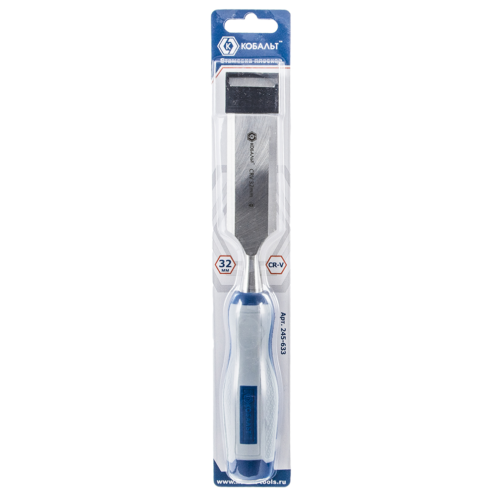 Стамеска плоская КОБАЛЬТ 32 х 140 мм, CR-V, двухкомпонентная рукоятка (1 шт.) блистер (1 шт., блистер) арт. 245-633 | код 427245
