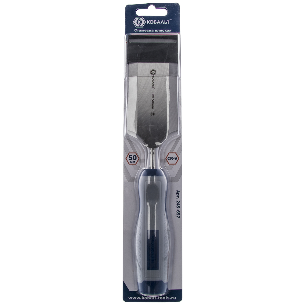 Стамеска плоская КОБАЛЬТ 50 х 140 мм, CR-V, двухкомпонентная рукоятка (1 шт.) блистер (1 шт., блистер)