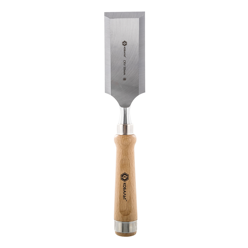 Стамеска плоская КОБАЛЬТ 50 х 140 мм, CR-V, деревянная рукоятка (1 шт.) подвес (1 шт., подвес)