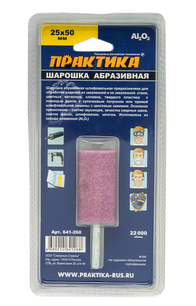 Шарошка абразивная ПРАКТИКА оксид алюминия, цилиндрическая 25х50 мм, хвост 6 мм, блистер арт. 641-268 | код 428407