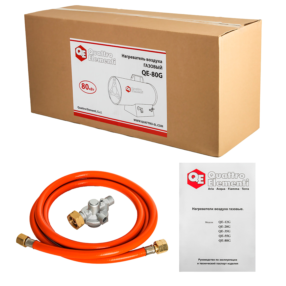 Газовые нагреватели воздуха Quattro Elementi предназначены для обогрева и вентиляции закрытых помещений складского и промышленного назначения. В комплекте газовый шланг и редуктор. Регулятор мощности 25 - 80кВт.