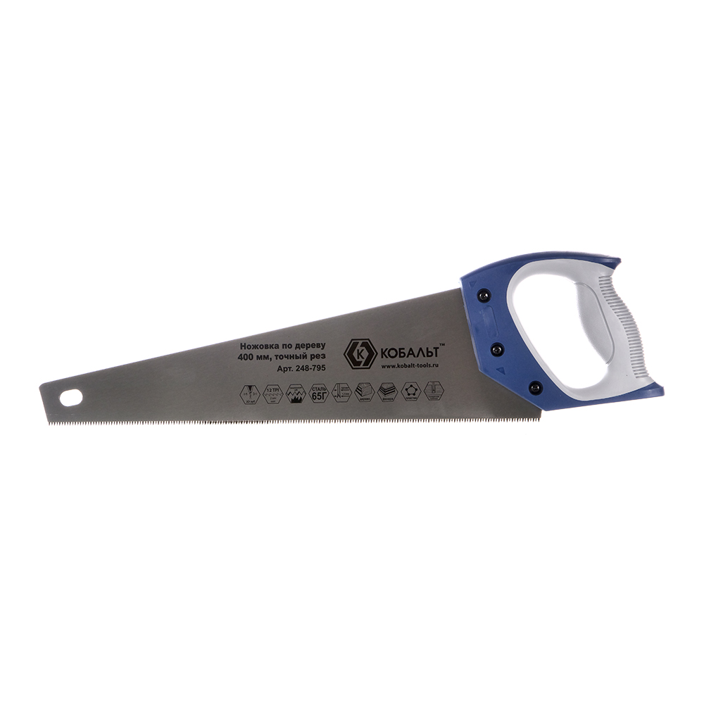 Ножовка по дереву 400 мм, шаг 2 мм/12 TPI, закаленный зуб, 3D-заточка КОБАЛЬТ 248-795