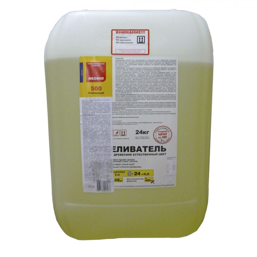 NEOMID 500 — отбеливающий и очищающий состав. Эффективно уничтожает деревоокрашивающие и дереворазрушающие грибы, удаляет серый налет, возвращает древесине естественный цвет, повышает ее сортность. Может быть использован для обработки паллет для хранения и транспортировки пищевых продуктов. Не изменяет структуру древесины, ее естественных свойств.