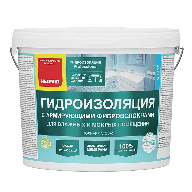 Гидроизоляция с армирующими микроволокнами - 6 кг. NEOMID