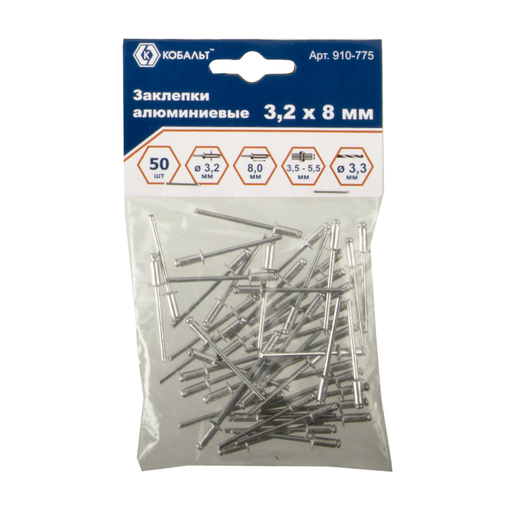 Заклепки КОБАЛЬТ алюминиевые, 3,2 х 8 мм (50 шт.) пакет арт. 910-775 | код 725532