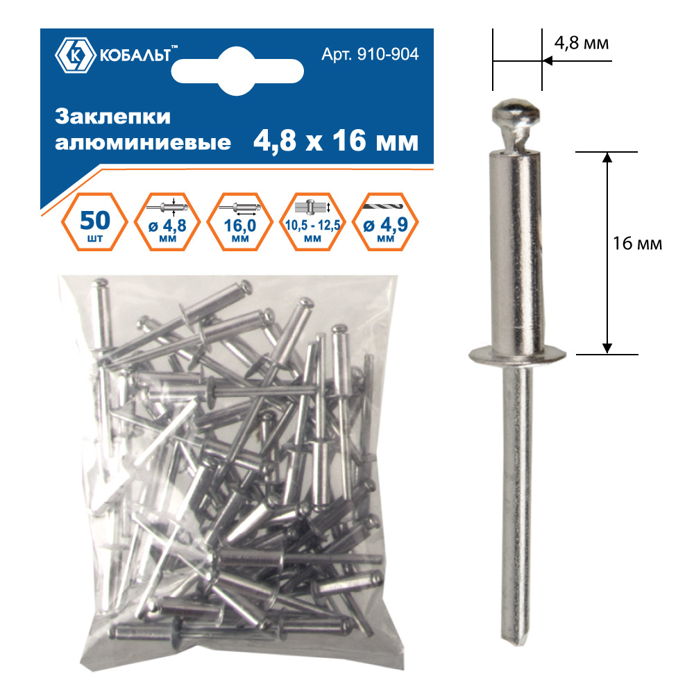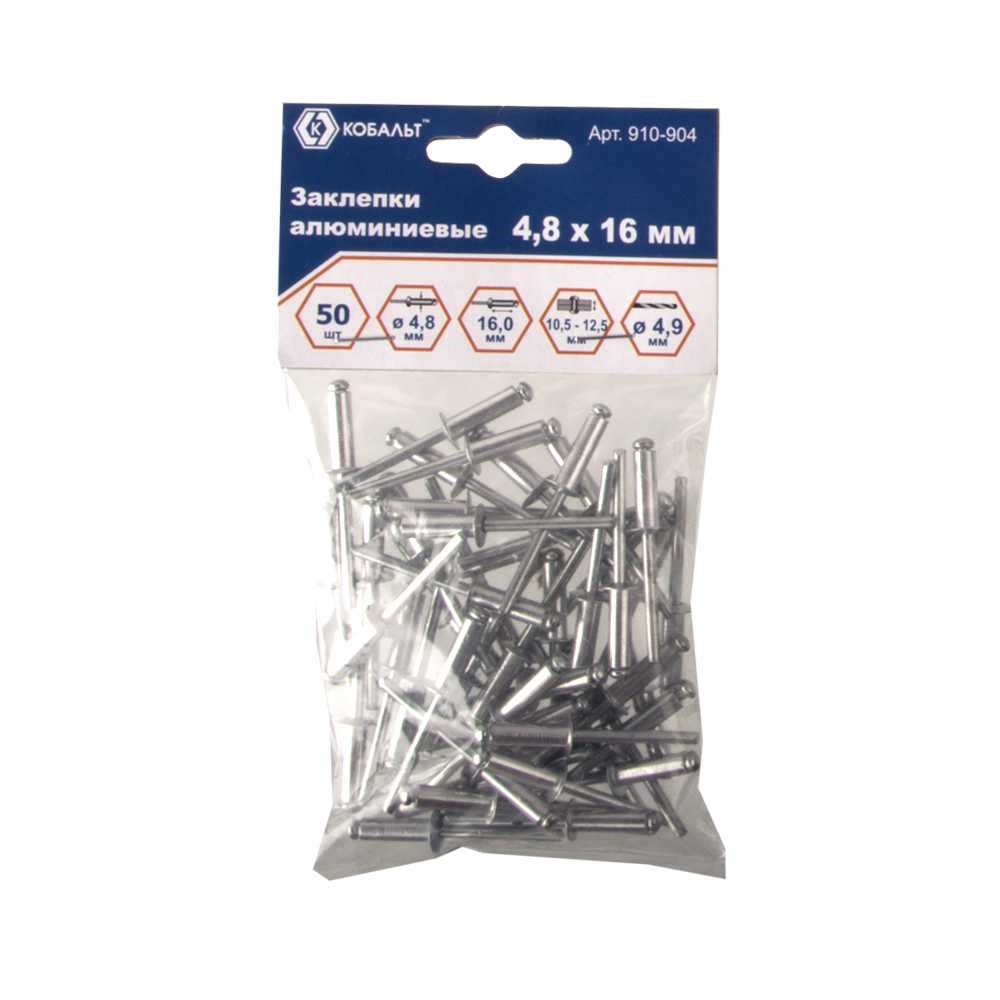 Заклепки КОБАЛЬТ алюминиевые, 4,8 х 16 мм (50 шт.) пакет арт. 910-904 | код 725557