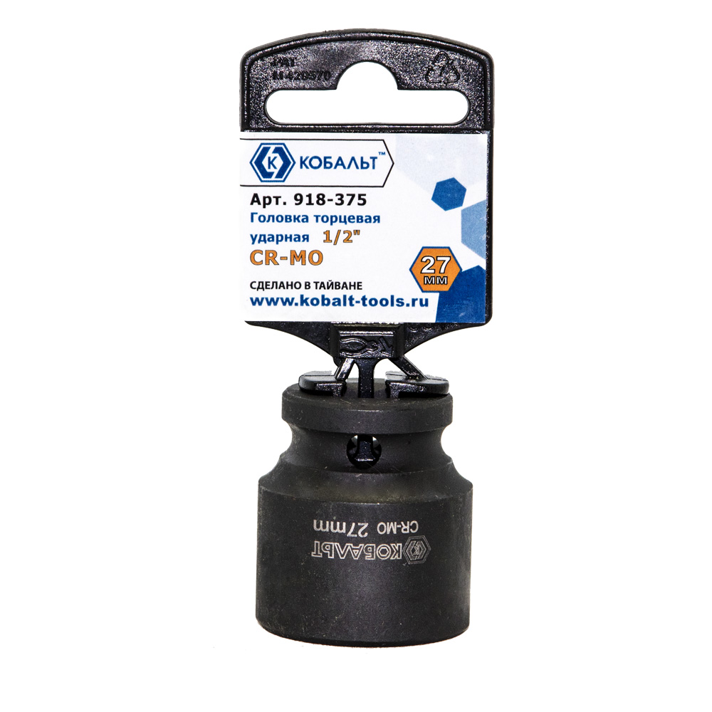 Головка торцевая ударная КОБАЛЬТ 1/2", 27 мм, Cr-Mo (1 шт.) подвес арт. 918-375 | код 746983