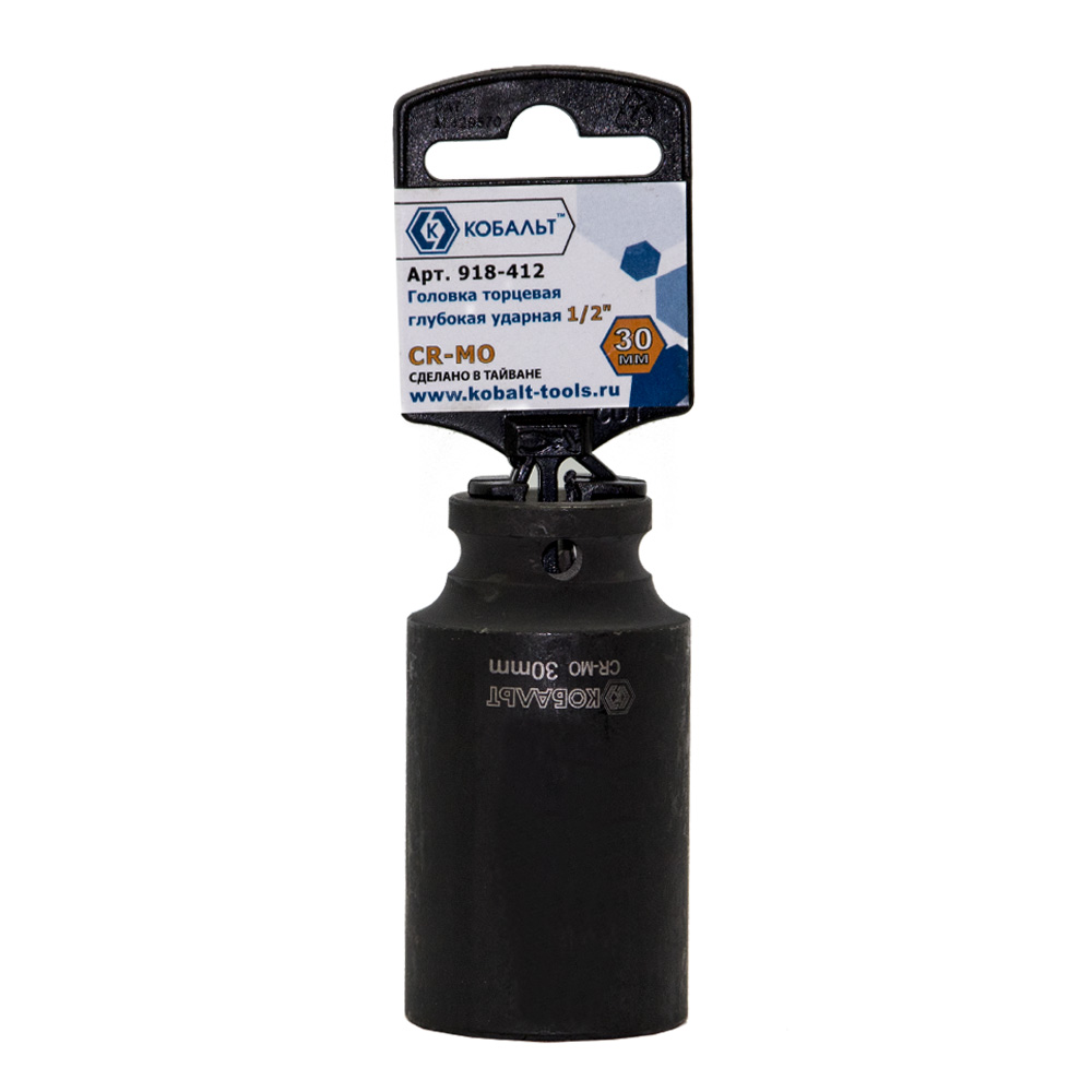 Головка торцевая глубокая ударная КОБАЛЬТ 1/2", 30 мм, Cr-Mo (1 шт.) подвес арт. 918-412 | код 746987