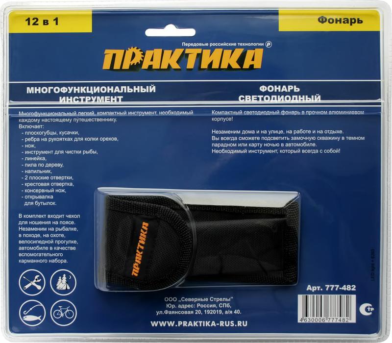 Мультитул ПРАКТИКА плоскогубцы 12 в 1 + LED Фонарик арт. 777-482 | код 765378