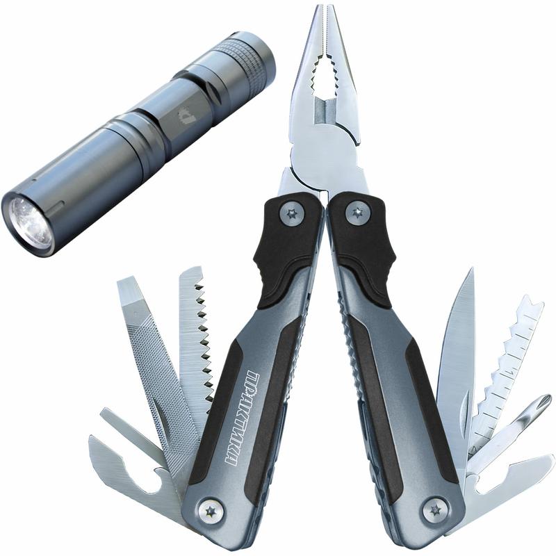 Мультитул ПРАКТИКА плоскогубцы 12 в 1 + LED Фонарик
