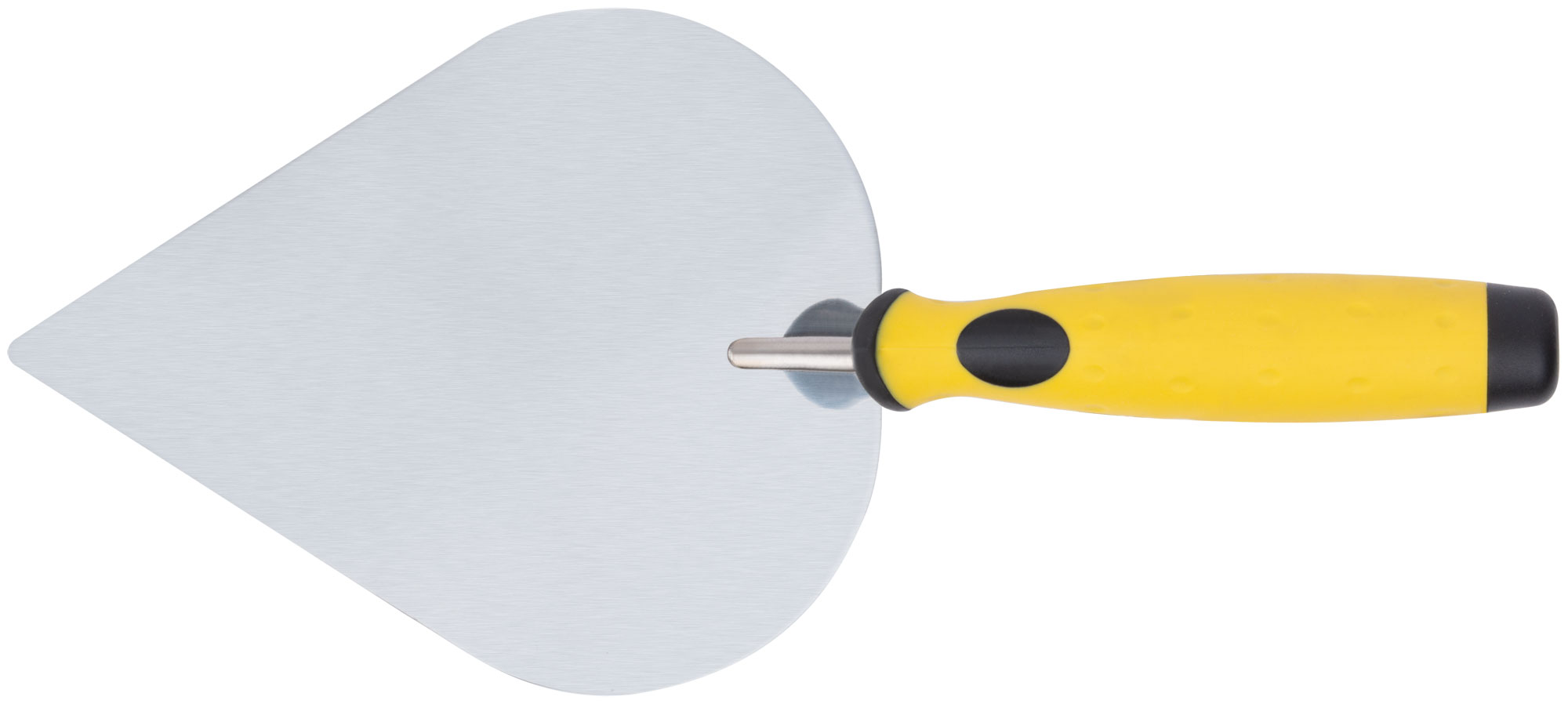 Мастерок штукатура ''Лепесток''. Для нанесения строительных смесей. Материал: нержавеющая сталь, мягкая прорезиненная ручка.