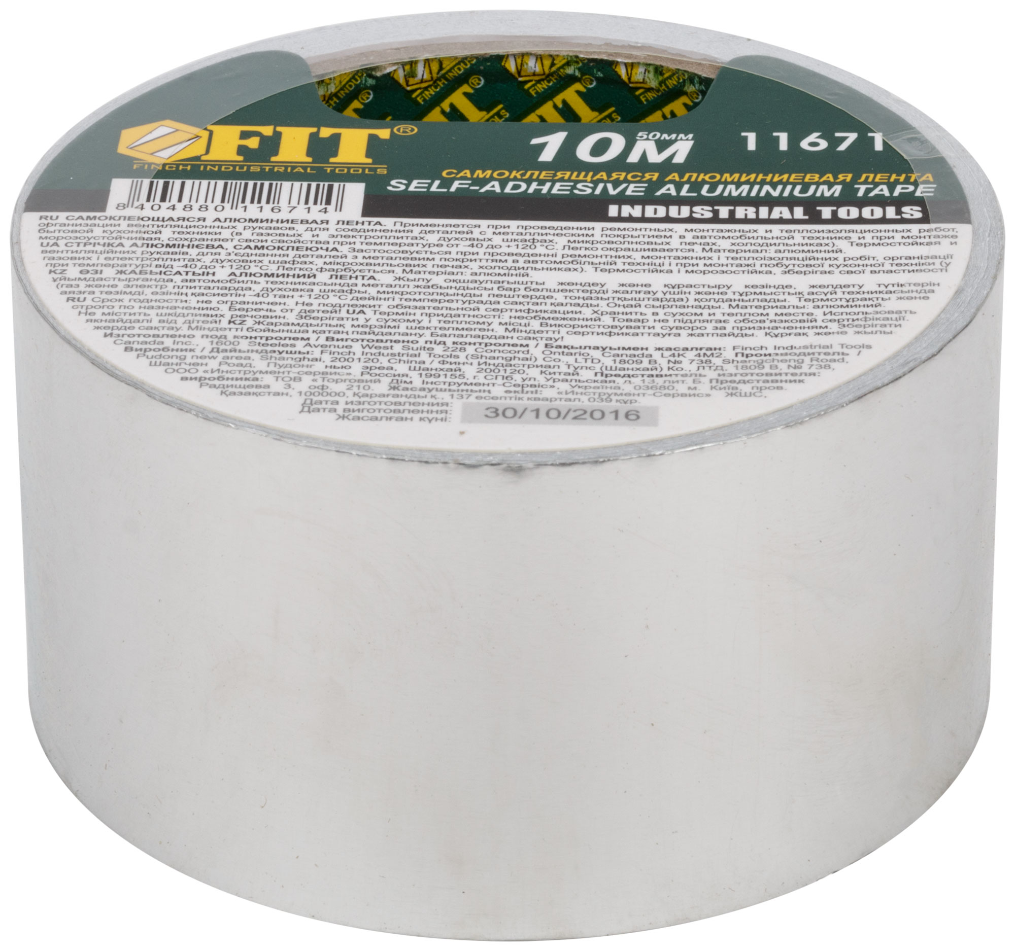 Лента алюминиевая клейкая, 50 мм х 10 м FIT FINCH INDUSTRIAL TOOLS арт. 11671 | код 780725