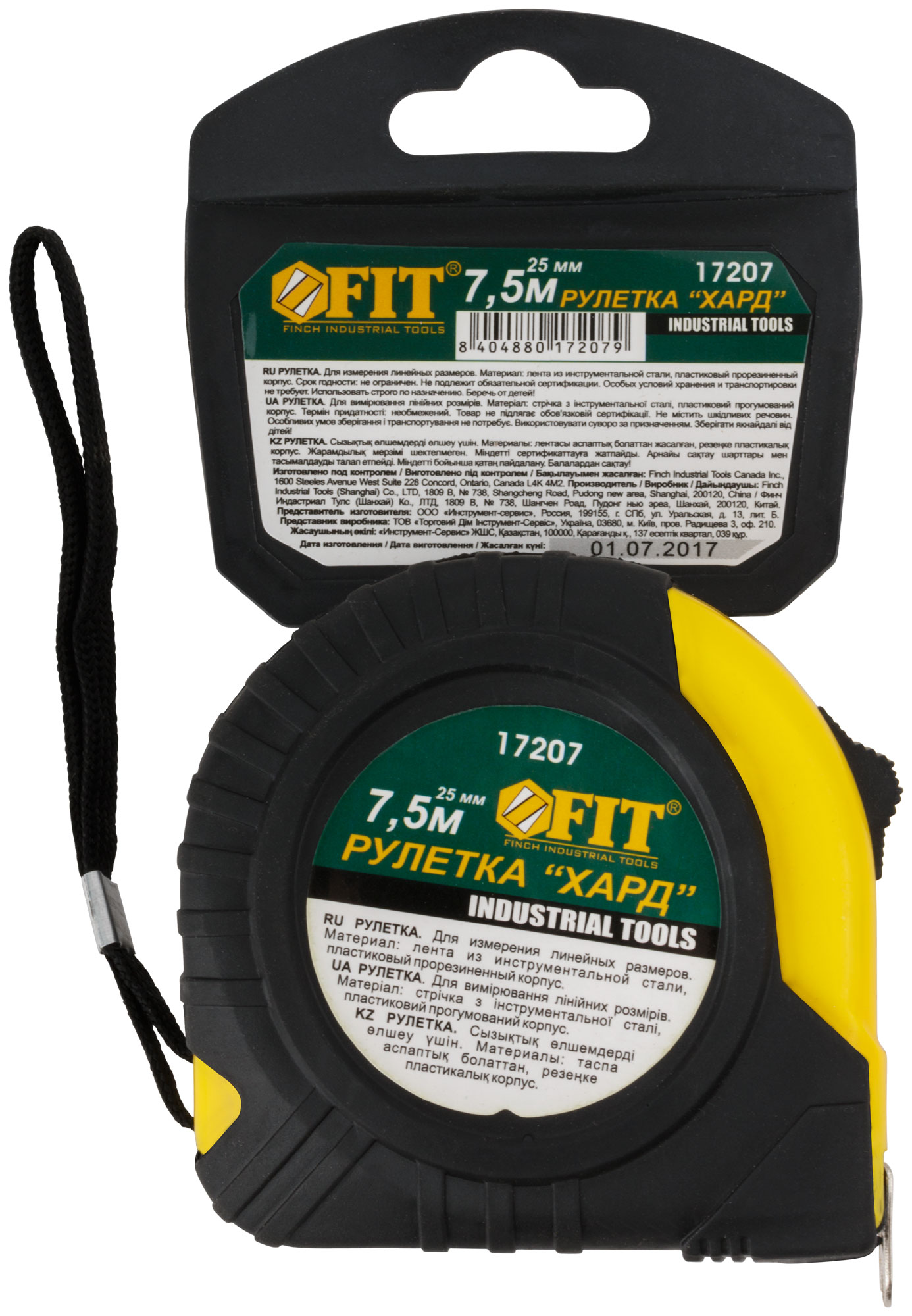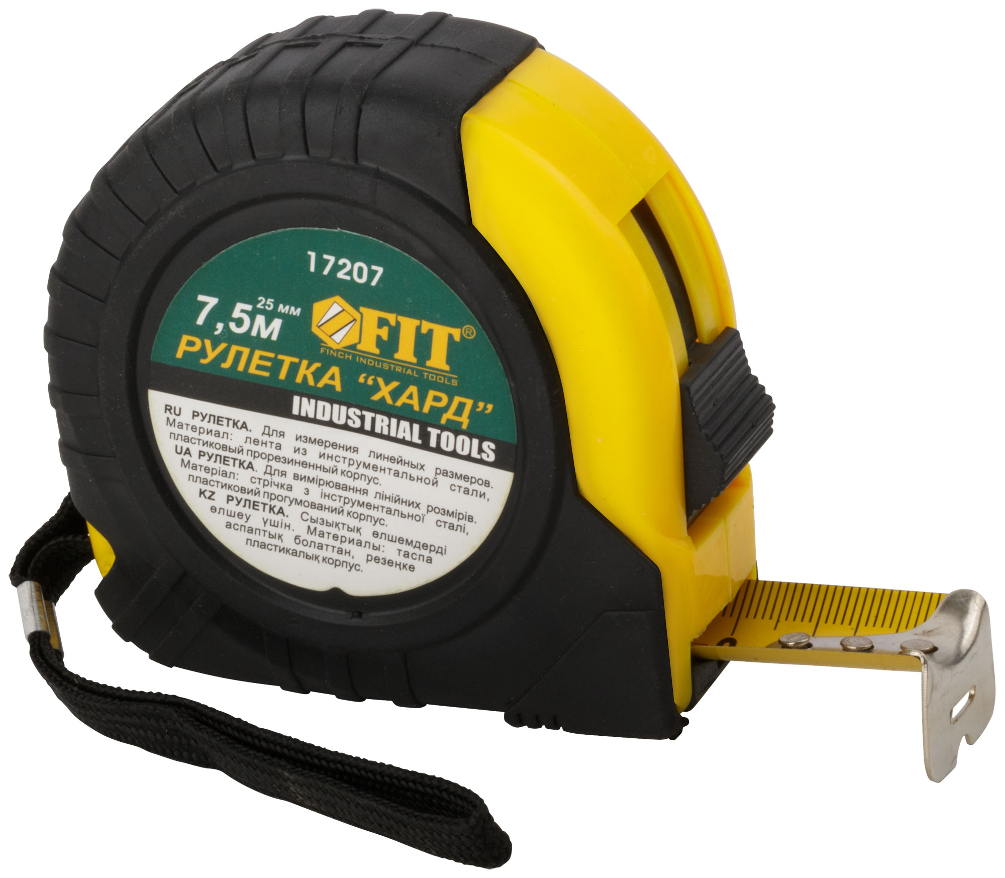 Рулетка прорезиненный корпус "Хард" 7,5 м x 25 мм FIT FINCH INDUSTRIAL TOOLS арт. 17207 | код 781040