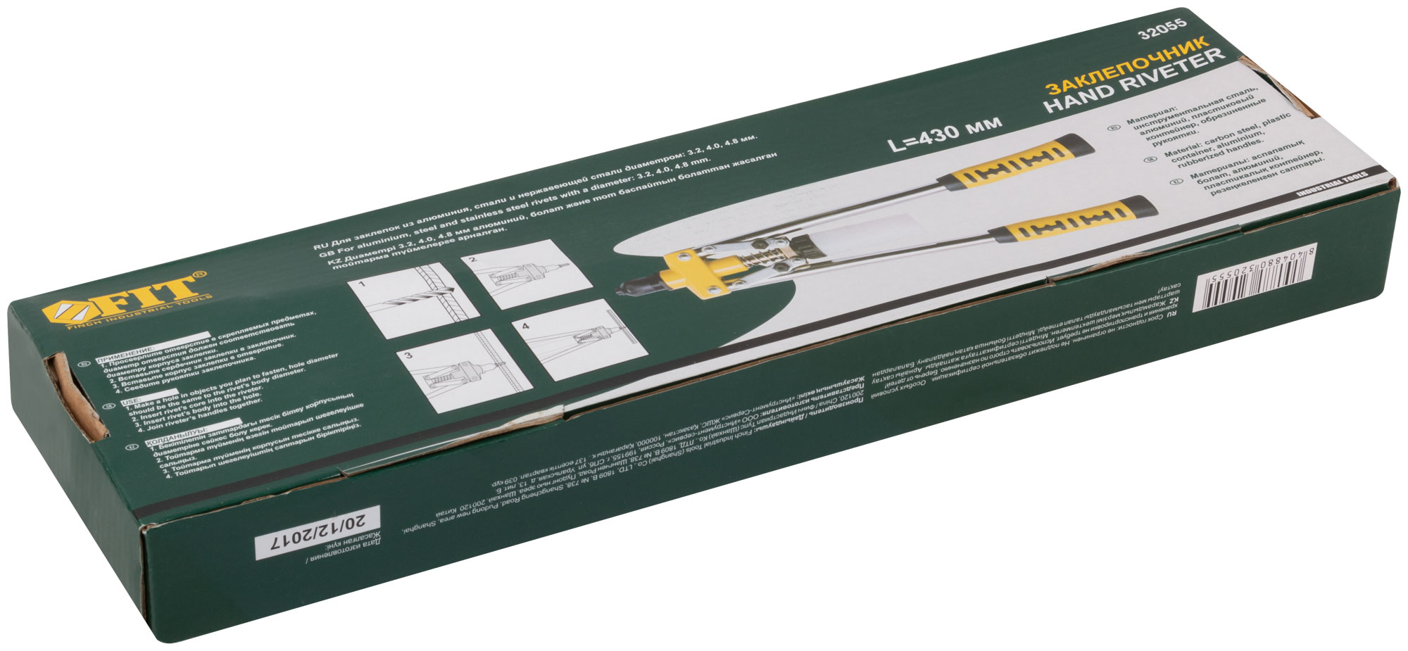 Заклепочник усиленный с длинными ручками, пластиковый контейнер 3,2-4,8 мм (430 мм) FIT FINCH INDUSTRIAL TOOLS арт. 32055 | код 781288