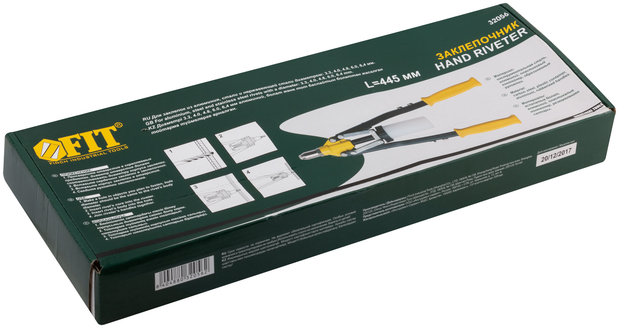 Заклепочник усиленный с длинными ручками, пластиковый контейнер 3,2-6,4 мм (445 мм) FIT FINCH INDUSTRIAL TOOLS арт. 32056 | код 781289