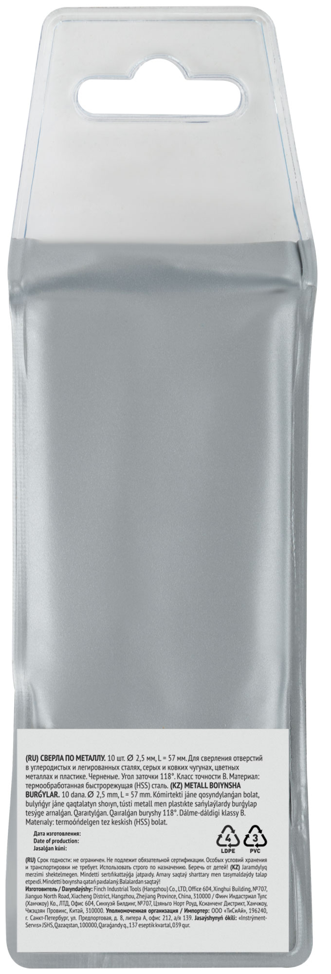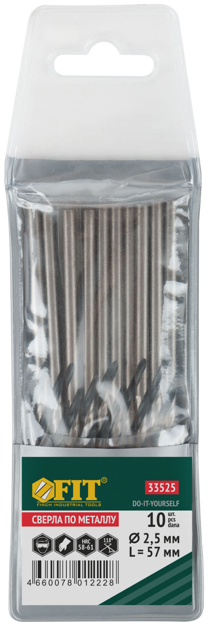 Сверла по металлу HSS черненые 2,5x57 мм (10 шт.) FIT FINCH INDUSTRIAL TOOLS арт. 33525 | код 781426