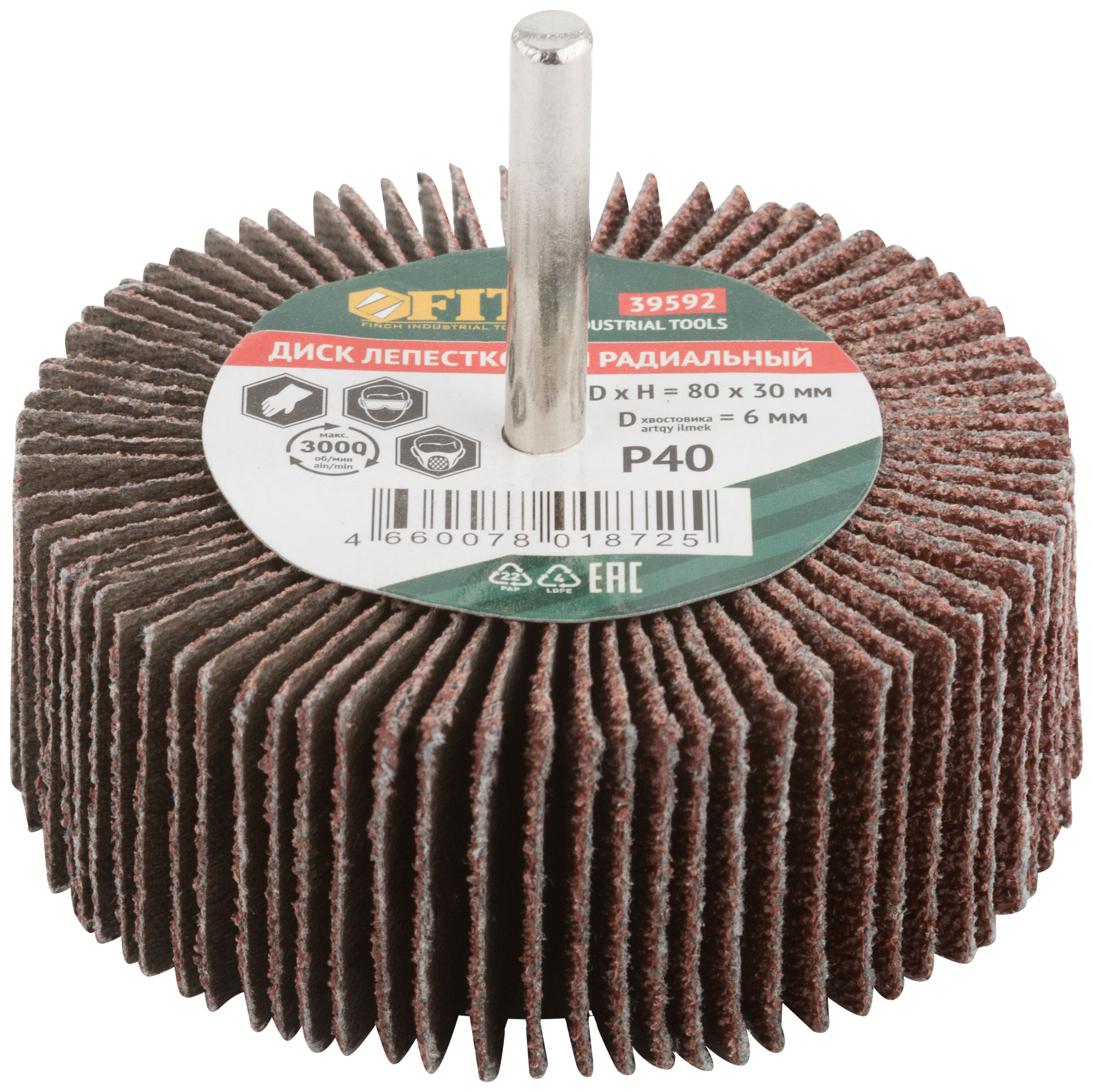 Диск лепестковый для дрели радиальный 80х30х6 мм Р 40 FIT FINCH INDUSTRIAL TOOLS арт. 39592 | код 782203