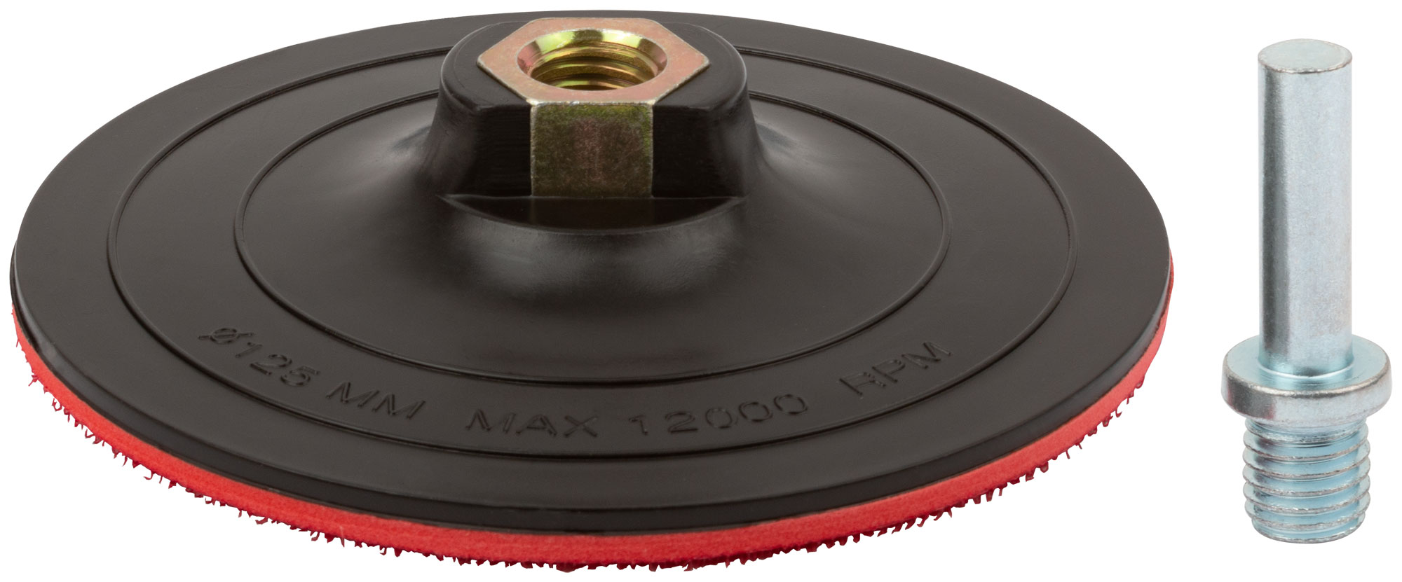 С липучкой. Используется со шлифовальными и полировальными кругами. Гайка М14 для крепления на УШМ. В комплекте переходник со штифтом для крепления на дрель. Материал: инструментальная сталь, платик,подложка из вспененного ПВХ.