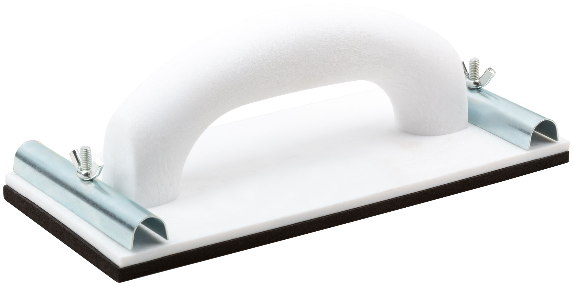 Для наждачной бумаги. Используется при обработке плоских поверхностей. Материал: пластиковый корпус, металлические прижимы.