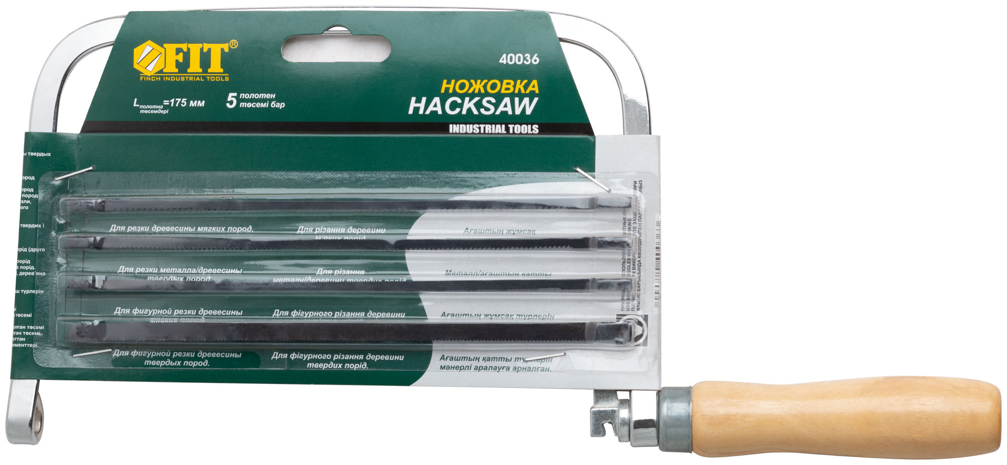 Ножовка по металлу и дереву 175 мм с глубокой рамкой + 5 запасных полотен FIT FINCH INDUSTRIAL TOOLS