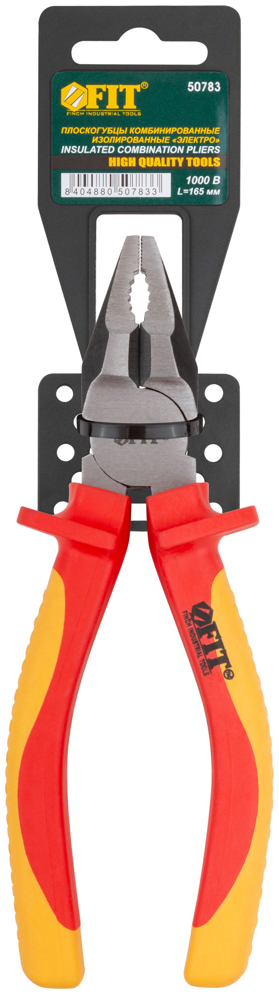 Плоскогубцы комбинированные "Электро", CrV сталь, черное полир.покрытие, мягкие изолир.ручки 165 мм FIT FINCH INDUSTRIAL TOOLS арт. 50783 | код 782868