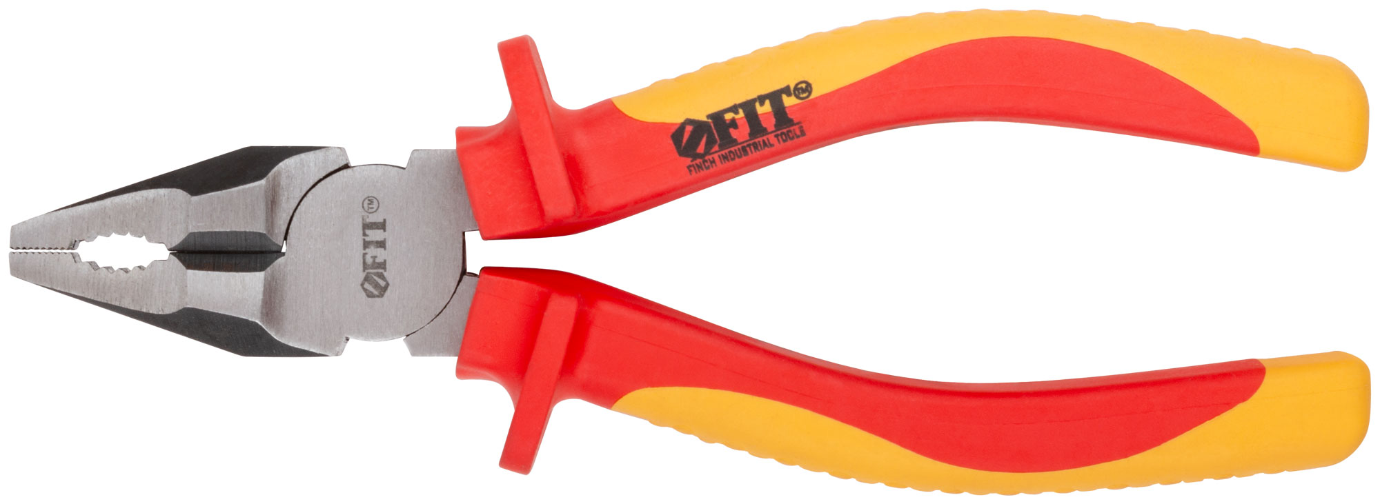 Плоскогубцы комбинированные "Электро", CrV сталь, черное полир.покрытие, мягкие изолир.ручки 165 мм FIT FINCH INDUSTRIAL TOOLS