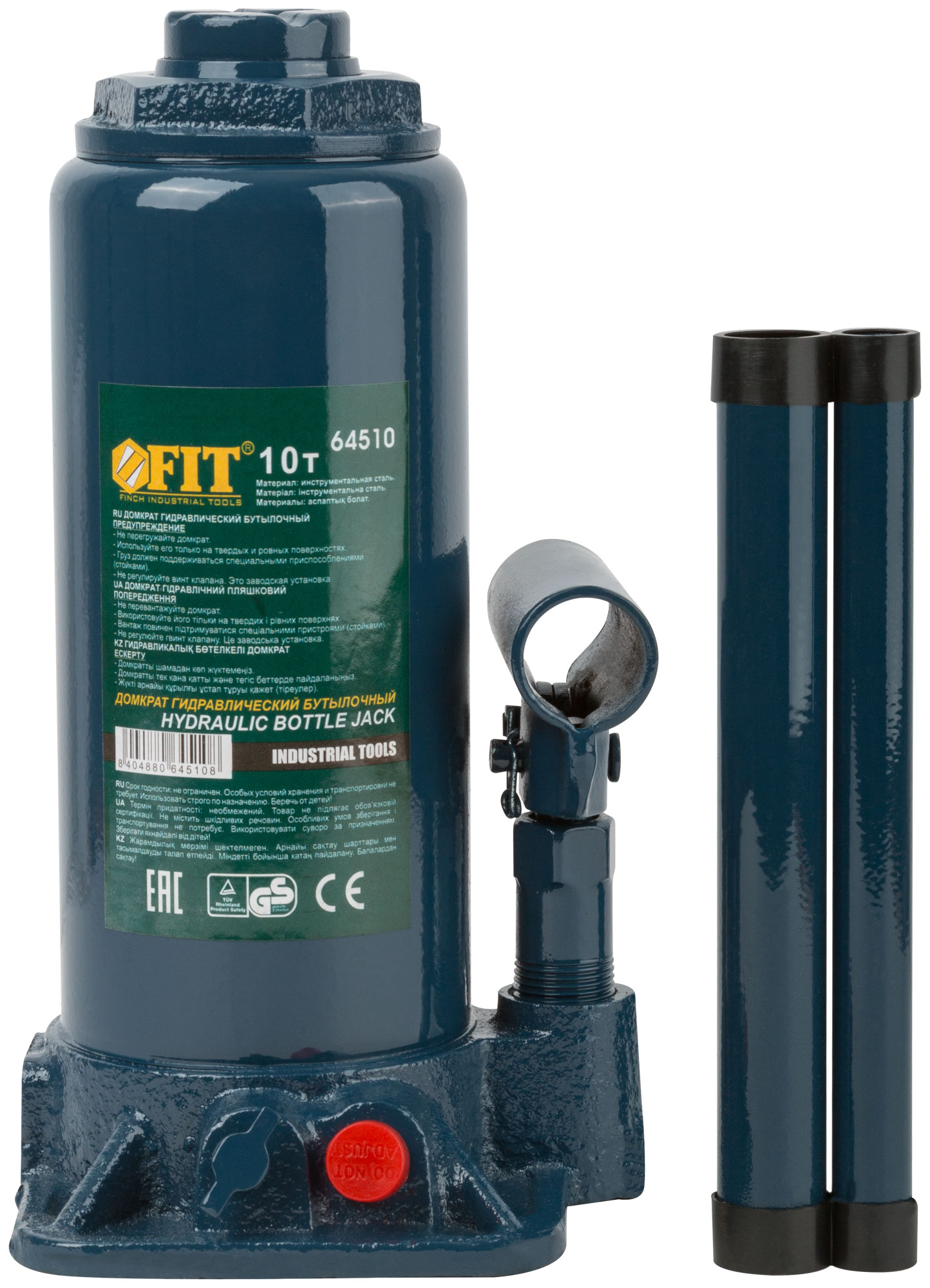 Домкрат гидравлический бутылочный 10 т FIT FINCH INDUSTRIAL TOOLS арт. 64510 | код 783574