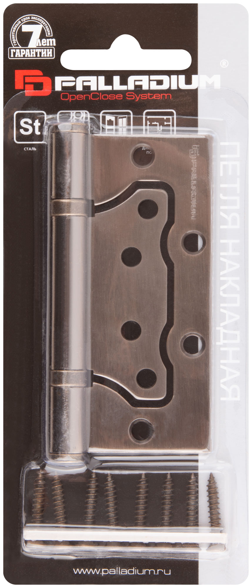 Петля дверная универсальная (без врезки) "PALLADIUM" 100 мм старая бронза (2ВВ - 100 АВ)
