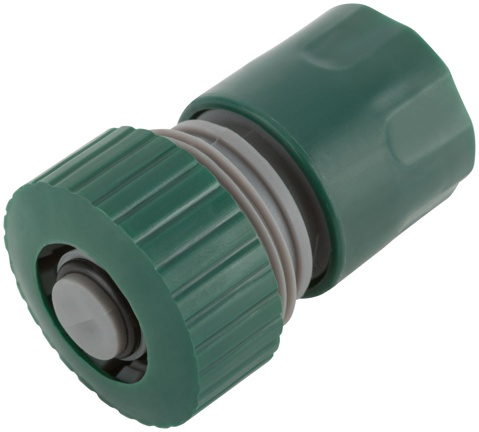 Применяется для быстрого и надежного соединения шланга с любой насадкой поливочной системы. Встроенный клапан автостопа перекрывает поток воды при снятии насадки. Материал: ABS пластик. Упаковка: блистер.