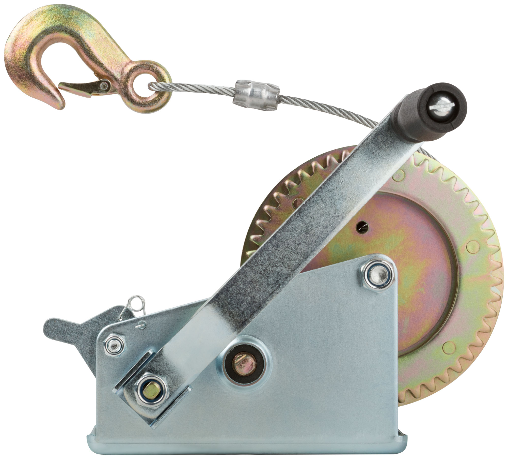 Лебедка шестеренчатая ( двойная шестеренка ), стальной трос 9,5 м х 5 мм, 1000 кг FIT FINCH INDUSTRIAL TOOLS